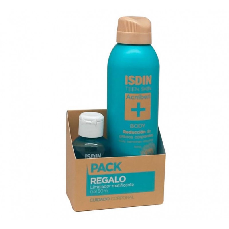 Este pack contiene Acniben Body 150 ml junto con el Gel Limpiador Acniben 50 ml en formato regalo, una combinación ideal para cuidar y purificar la piel con tendencia acneica. Reduce los granos corporales El spray corporal de secado rápido reduce granos en la espalda, hombros, y pecho.
